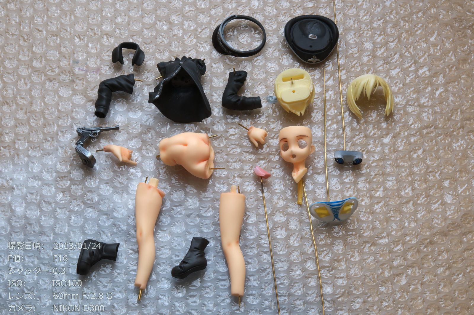 2013年1月完成 エーリカ・ハルトマン 原型製作:yr?(卓球模型) 1/8スケール全高約19.5cm(台座込み) yr?さん2012年の作品 瞳は別パーツになっていました。瞳デカールも付属していましたが少しドットが目立ったので使用しませんでした。頭部と帽子に磁石を仕込みました。 カラーレジンキット。