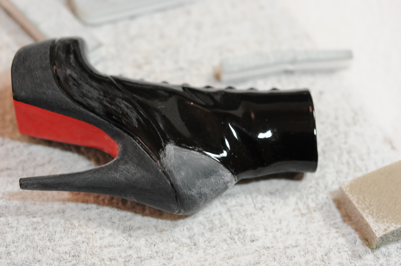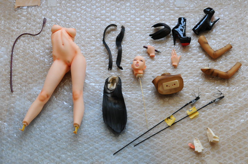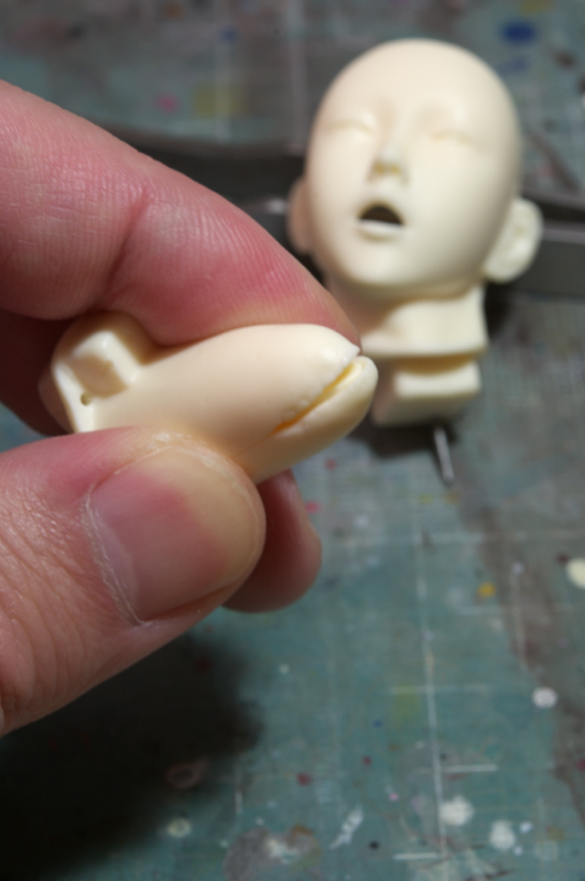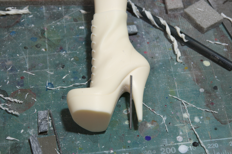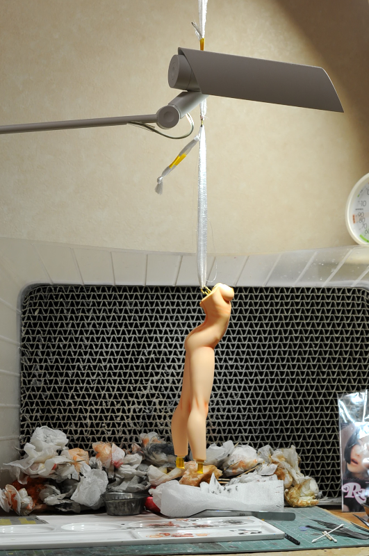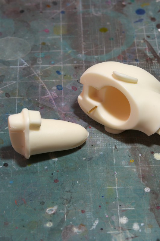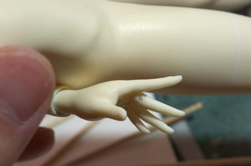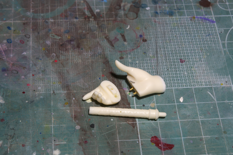 ムチのもち手には軸を入れ抜けなくしました。手の甲には塗装後継ぎ目消しをします。