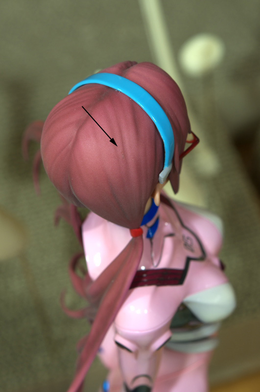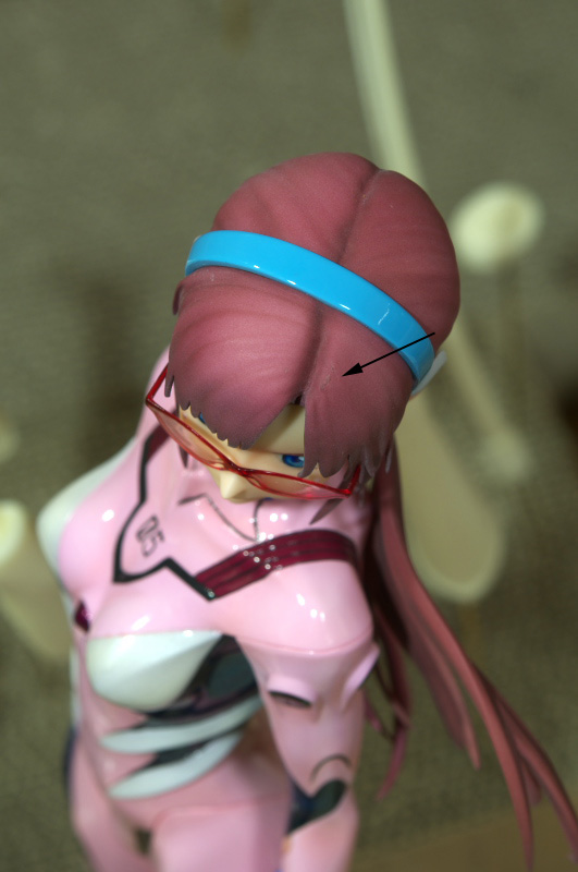 当初おさげ髪を外してフィギュアを寝せて梱包する予定でしたがおさげ髪の軸パーツが首を付けてからだときつくなった等で髪を接着しました。