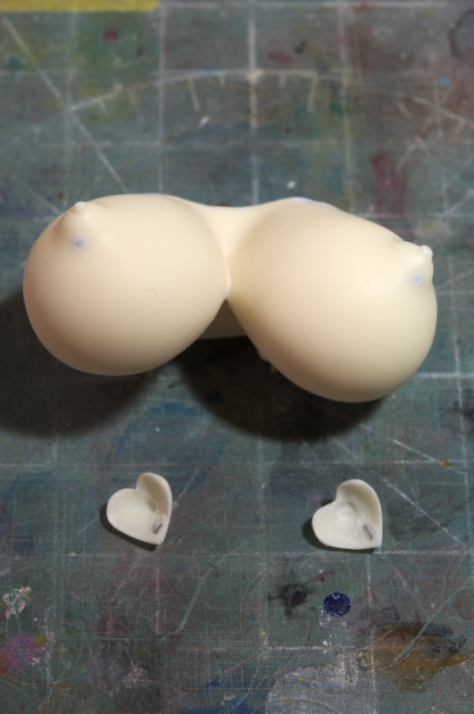 胸に磁石を入れて乳首パーツを保持出来ます。