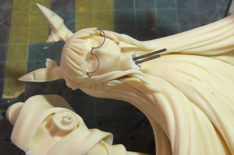 髪の重量が首一点に掛かりますのでガッチリ補強しました(1mmピアノ線2本)